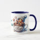 En Cute Lycklig Hanukkah-kombination av blå Mugg och kaka av kakao i Hett
