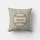 En baseboll i vintage stil dekorerar den blå och gräddstripade kudden. Anpassa denna kudde genom att ändra namn. Designen kommer från originalteckningen.