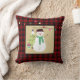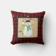 Den här buffelkudden i mönster har ett sött snögubbe, ljus och en fält för att du ska lägga till en namn eller hälsning. Idealisk julklapp till ett barn eller annat.