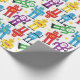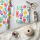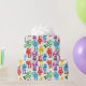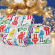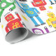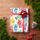 Vitt presentemballage med färgat mönster av utomjordingar och robotar från barn science fiction