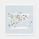 Ett vackert exempel på en världskarta med platser för inhemska djur och värld runt. En idealisk utformning för alla som i kärlek illustrerar undervisningsfrågor, geografi, djur och kartor etc. En perfekt för daghem med baby-décor, barnsovrumsdécor, barnpresentidéer, födelsedagsfester för barn osv.