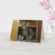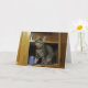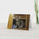 Det här blankade hälsningskortet innehåller vår hederliga sibiriska katt, Kimber, som har blivit stygg och klättrar upp i köket med de rena glasögonen. grått-strimlade sibiriska katten. Det här komiska hälsningskortet är perfekt för varje kattälskare.