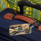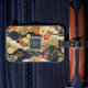 This luggage tab features a Japanese style print -- similar to patterns from kimonos -- with white, teal, tan, and orange on dark teal-- almost black. Your name monogram initial appears in gold text on a coordinated color block of dark blue teal, bordered in gold. This kimono style Asian print pillow makes a lovely accent for your home or a gift for a housewarming, or a friend or loved one.