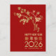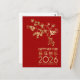 Fira 2026 års år för brandhästen med det röda vykortet för elegant och guld med körsbärs blommar gren. Perfekt för att skicka varmt önskemål till familj, vänner eller affärsklienter under det nya året.