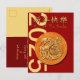Enkel och modern design med en guldaktig orm och ett pappert barn i en stor "träcirkel" + Stora 2025 i lodrät position + Golden Hälsning i kinesiska + guldfärgade "Ormen"-år. Utformning på vykort med helgdag med önskemål för att anpassa sig inuti kortet. Matchar hälsningskort och mer...