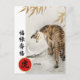 Kinas tigerår i lycklig. Traditionell asiatisk målning av tigerformgivningen med guld-foliedetaljer vykort på kinesiska med personlig år. Kinesiska tecken på designen är ett tigertecken i den kinesiska Zodiac och Kinas vanligaste nyårsjubileum Hälsning. Matchningskort, traditionella kinesiska röda kuvert och gåvor tillgängliga under det kinesiska nyåret/året för vår butik, tigerkategorin.