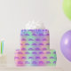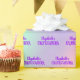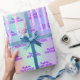 Elegant, girig, glamorös stil party-gåva papper för en Quinceañera, 15:e födelsedag. En trendig med en begynnelsebakgrund med enmajs och regnbåge färg i rosa, lila, ro guld, myntgrönt. Dekorerad med faux glitter-droppar i ro guld, rosa, lila. Anpassa och lägg till namn och text. Lila färgad brev.