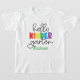 En söt, fin T-shirt för din lilla flicka eller pojkar första dagen på Kindergarten. Hej Kindergarten är designen och du kan lägga till deras namn vid grund om du vill.