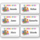 Dessa förskolemärken student namn är perfekter för första dagen eller veckan tillbaka i skolan, så att studenter och läraren kan lära sig varandra namn. Dessa etiketter kan också användas under hela året för att märka klassrumsduva på hål, så att studenter vet var deras sak ska placeras. En annan använda är att föräldrarna ska märka sina släktingar så att varje etikett får samma namn. Etiketterna kan vara personliger genom att ändra texten på varje etikett. Märket består av ord "Kindergarten" med varje brev olika färg och en bild av en nalle omgiven av skolförråd.