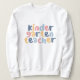 Håll dig mysigt samtidigt som du firar undervisningens glädje med den här trevliga "Kindergarten Teacher"-designen. Med färgstarka bokstäver med blommigt accents är den här tröjan perfekt för stolta lekmän. En tänkbar gåva till Lärarbedömningsveckan, firande i slutet av året, eller helt enkelt en roligt och snyggt biet för daglig bära in och ut ur klassrummet.