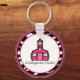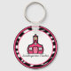 En nyckelkedja med logotypen Rosa Schoolhouse i zebra tryck ram med rosa trim. Lägg till ditt namn eller annan valfri text.