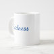 I mugg visas ord Kindness med blå text. Så det säger till andra att ni stöder vänlighet. Och det påminner dem om att också agera med vänlighet.