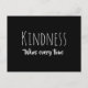 Kindness vinner varje gång. Svart vykort med lätt grått-typografi.