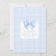 Fira din lilla födelse med vår lilla söta duschinbjudan till pojke. Med ett lätt baby blue armband på den bohemiska bågen med gingham mönster på baksidan, så anger inbjudan perfekten för en söt pojke firande.