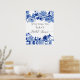 Kineseri Blå Vit Välkomst Fågel Löv Bröllop Poster