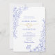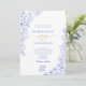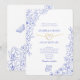 Följ med tidlös romantik på din bröllopsdag med denna eleganta kineseri-inspirerade vita och blå inbjudan. Zart blå blomlinjekonst omsluter ramen, kompletterad med fina fjärilsteckningar och ett unikt guldlindat hjärta som symboliserar enhet och evig kärlek. Den raffinerade layouten och den rena serif-typografin ger en touch av sofistikation, perfekt för klassiska, trädgårds- eller europeiskt inspirerade bröllop. Anpassa med dina ceremonidetaljer och skapa ett minnesvärt souvenir som förenar tradition och charm. Koordinerad blommig baksidesdesign ingår.