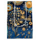 Maximalistisk sömlös mönsterpresentpåse med exotiska fåglar, frodiga botaniska detaljer och utsmyckad lövverk i rik blå, orange och gyllene toner. Inspirerad av vintage-tapetserier och kineseristisk estetik, är denna intrikata millefleur-inspirerade design idealisk för konstlskare, maximalistiska dekorationentusiaster och de som dras till eleganta, historiska naturmotiv.