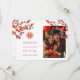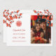Det här kinesiska fotot i bröllop sparar datumkortet med röda körsbärssymboler och en röd dubbla lyckosymbol på vit bakgrund. Spara datumtexten i ett elegant-skript. Matchande kinesiska bröllop-produkter tillgängliga.