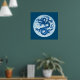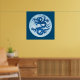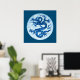 Poster i en kinesisk drake mönster som är anpassad efter den antika porslinartade chinan, i djup indigoblått och vitt på en mjuk, snurrande bakgrund av moln