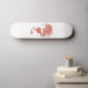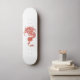 Röd traditionell kinesisk dragon på skateboard med det naturliga träet som bakgrund.
