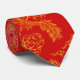 En röd och guldkrage med ett unikt drakmönster på framsidan och baksidan av bandet.