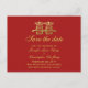 Meddela ditt kinesiska bröllop med stil med detta eleganta spara datum-kort i festlig röd och gyllene gul färg med en icke-metallisk falsk guld folie dubbel lycka-symbol.