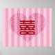 Kinesisk kalligrafi Symbol Text av Dubbla Lycka Traditionellt använd för Bröllop Firande med Polka dots Heart på Auspicious Festive Rosa Stripe Background Illustration Teckning Poster