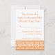 Den här OSA kort i eleganten har en ljus orange och en stor kinesisk lycka till vit på framsidan. En orange gräns utmed grund kant på kortet med ett vitt geometriskt mönster som inspirerats av kinesisk prydnadation dekorerar baksidan med en viss exempeltext i ställe ovanför som kan anpassas efter dina behov. Se till att kontrollera de andra produkterna i China Elegance in Orange som är inställda på att skapa en verkligt samordnad sökning efter ditt evenemang.