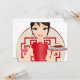 Vacker kinesisk kvinna som har en skål kinesisk mat