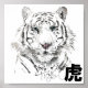 Ursprungliga digitala vattenfärger i en vit tiger av Animals Teckning. Utformning på kvadratisk extra liten poster med "Tiger-året" och stor kinesisk tigersvart ideogram framför. Perfekt för kinesiska nyår 2022 eller födelsedag (människor födda under tigeråret).