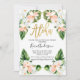 Flickans kallfärgade munkavaj. Den här designen har olika grönt av tropisk löv och vissa vita och rosa blommor på vit bakgrund. Rubriken är en faux-guld-folie-kalligraftext. Det här är ett nytt och modernt sätt för gästerna i inbjudan att duscha en flicka.