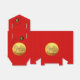 Sammansättning med en gyllene traditionell kinesisk papper klippning av en drakon i en gyllene cirkel + en liten modern bokstav för år 2024 och kinesisk draksymbol på en liten svart cirkel. Utformning på tält-rutan på röd bakgrund. Finns i kub-, gable- och take-out-förmånslådor. Matchande hälsningskort, vykort för helgdag, inbjudan och mycket snart. Perfekt för det kinesiska nyåret av draken 2024 eller födelsedagen (människor födda i Dragon Year).