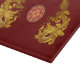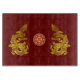 Dubbla kinesiska gyllene draken pappert klippt med kinesiskt dekorerat mönster i mitten på mörkens röda bakgrund. Utformning på skärbordet. Du kan enkelt ändra bakgrunden färg genom att klicka på anpassningsknappen. Perfekt för det kinesiska nyåret för draken eller födelsedagen (människor födda i Dragon Year).