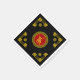 Fira det kinesiska nyåret guld och rött "ornament" med ett rävmotiv och ett kinesiskt gräns.