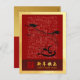Original tvättar målning nr 4 av en häst med RB. Utformning av vykort för lodrät helgdag med olika kinesiska kalligrafi av Fu-ideogram (Tur) i röd bakgrund + gammal kinesisk kalligrafi för Horse + Önskemål på kinesiska och engelska med gyllene texturerad papper (bildutskriven) + texter som ska anpassas i baksidan av vykortet.
