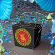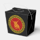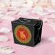 Fira det kinesiska nyåret guld och rött "prydnadsämne" med en räv och ett kinesiskt gräns-motiv och lyktor.