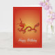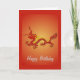 Denna gratulationskort har en röd och gyllene drake mot en röd bakgrund med en gyllene solstrålning. Draken har en tunn, böjd kropp med guldfärgade taggar längs ryggen och svansen. Den har vassa klor längst ut på fötterna, horn och vassa tänder. Draken firar födelsedagar på eller runt det kinesiska nyåret, drakens år 2012, men är ett attraktivt födelsedagspresentkort under hela året.