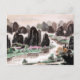 Vykort. Kinesisk färgmålning med titeln "Sång of Traveler",遊 子 谣, yóuzǐ yáo, av den kinesiske prisbelönta konstnären Mingshu Jing. Presenter är en vacker syn på vår i södra Chinan. Man kan se grönten fält, de rosa persikogrupperna, de små blommarna, de vita fåglarna som flyger och fiskmannen med sina skarvar som fiskar på floden. I den nedre delen av målningen finns det en resande som rider en åsna på vägen... Besök vår affär om du vill ha fler kinesiska målningar av Mingshu Jing. Tack.