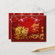 Kinesiska lyktor med fyrverkerier som bakgrund med gyllene pappra snitt av söt räv + stor gyllene 2021, guldåret för Ox, hälsning "Gott nytt år" på kinesiska och gult Ox ideogram. Utformning på vågräts grundläggande vykort med mörkens röda bakgrund + samma bakgrund bakåt. Matchande hälsningskort, vykort för helgdag, inbjudan, hantverksutrustning, party och mycket annat... Perfekt för ett glatt kinesiskt nyår av Ox 2021.