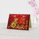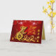 Kinesiska lyktor med fyrverkerier som bakgrund med gyllene pappra snitt av ett sött råtta + stor gyllene 2020, Råtta, hälsning "Gott nytt år" på kinesiska och gyllene råtta ideogram. Utformning på vågräts standardiserade hälsningskort med mörkens röda bakgrund + samma bakgrund inuti den övre och den gyllene bilden papper inuti... Matchande vykort, inbjudningar och annat.. Perfekt för ett glatt nytt år för Kina i Råtta 2020.