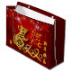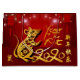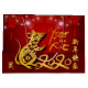 Kinesiska lyktor med fyrverkerier som bakgrund med gyllene pappra snitt av ett sött råtta + stor gyllene 2020, Råtta, hälsning "Gott nytt år" på kinesiska och gyllene råtta ideogram. Utformning på stor presentväska med röd bakgrund i mörken.. Matchande hälsningskort, vykort, inbjudningar och annat...