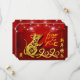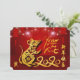 Kinesiska lyktor med fyrverkerier som bakgrund med gyllene pappra snitt av ett sött råtta + stor gyllene 2020, Råtta, hälsning "Gott nytt år" på kinesiska och gyllene råtta ideogram. Design på platta party-kort med mörk röd bakgrund + samma bakgrund i bakgrunden med texter som ska anpassas för kinesiska nyår Party.Du kan enkelt ändra text (typsnitt, färg, storlek och position) genom att klicka på anpassningsknappen. Matchande vykort, hälsningskort med mera... Perfekt för ett glatt nytt år för Kina i Råtta 2020.