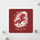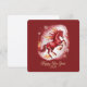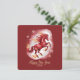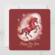 En handmålad akvarellillustration av en majestätisk röd eldhäst med flödande karmosinröd man och svans, dansar graciöst mot en varm burgunderröd bakgrund. Hästens päls skimrar i djupa scharlakansröda och körsbärsröda nyanser, medan gyllene lågor tycks fladdra runt dess hovar och genom dess vindpinade man. Ömtåliga snöflingor driver försiktigt runt scenen och skapar en magisk vinteratmosfär med mjuka vita höjdpunkter. Längst ner står elegant kalligrafi som lyder "Gott nytt år 2026" i rik gyllene bokstäver, vilket fullbordar denna festliga julhälsningskortdesign med traditionell högtidlig charm.