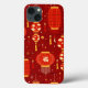 Bilden skildrar ett sömlöst mönster som firar det kinesiska nyårsområdets festliga stämning. Konstruktionen är fylld med röda och guld-lyktor i olika traditionella former, dekorerade med invecklade detaljer som blommönster, tasslar och kinesiska symboler. Vissa lyktor har gyllene tecken, som den kinesiska symbolen för "förmögenhet" (福), som betonar tur och välstånd. Produkten har lyktor som ordnats i en överlappande sammansättning och som är sammankopplade med tunna svarta strängar för att imitera dekorationernas utseende under det kinesiska nyårslandet firande. Ytterligare förskönande inslag, som guld mynt, smycken och små prickar i vitt, rött och guld, är spridda över hela bakgrunden, vilket ökar känsloyttringen och festligheten. Rikens röda bakgrund symboliserar lycka och lycka till, medan guld accents tillför en inslag av elegans och välstånd. Denna design är idealisk för dekorativa syften som att slå in pappra, festliga dekorationer eller kulturella evenemangsteman.