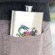 En kinesisk grönt och lila vatten-drake med orange koi-fisk, lotus-blommor. körsbärsblommor i vatten i en blå bakgrund