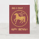 Ett födelsedagskort för någon född under det kinesiska året för hästen 2002, med en guld-färgad-hästsilhuett, från en handmålad illustration av Judy Adamson.