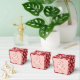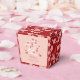 En unik kanji-skrivning av ordet "ai" ("kärlek") konstruerad av orientaliska röda körsbärsblommor / sakurablommor med vita grenar på en mjuk rosa bakgrund bröllopsdusch / förlovningsfest presentförpackning.