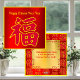 Usher på det kinesiska nyåret med vårt imponerande kinesiska nyårskort för Calligraphy Lunar Greeting Card som visar att det kinesiska ord är lyckosamt. Bilden är röd med fet guld-kontur och utskriven på en röd, folieliknande bakgrund. Både rött och guld symboliserar välstånd, välstånd och lycka till som är traditionella aspekter av kinesisk kultur. Texten på kortets baksida är anpassadet för mer personlig hälsning.