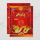 Stor kinesisk traditionell knut i en röd dekoration med gyllene pappra klipp av en draken (utskriven bild) + 2024 (inte anpassade) och liten Gott nytt år på kinesiska och engelska. Utformning på vykort för helgdag av lodrät. Matchande hälsningskort, förnödenheter, party och mer...Perfekt för en kinesisk nyhet från Lycklig 2024. - Kineser används ofta för att uttrycka lite bra önskemål för lycka, välstånd.