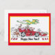 Glad kinesiskt nyår-kort för Året för Tiger, designad speciellt för barn, med Tiger som kör en ljusröd tävlingsbil tillsammans med alla andra kinesiska horoskopdjur!